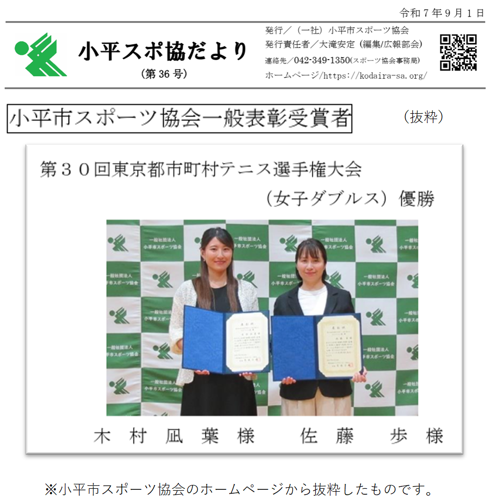 - 2025年6月:女子ダブルスの佐藤・木村組が小平市スポーツ協会表彰されました。